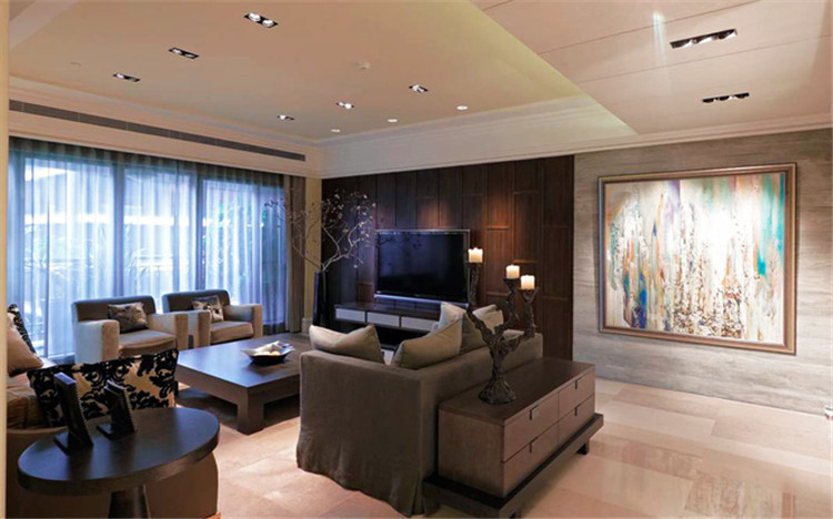 墙面使用石材,更显空间的质感与大气。墙面使用一整幅大装饰画点缀空间,大幅的画作相比于其他的更显空间的大气。空间加入了烛台装饰点缀空间,与空间风格更为融合。